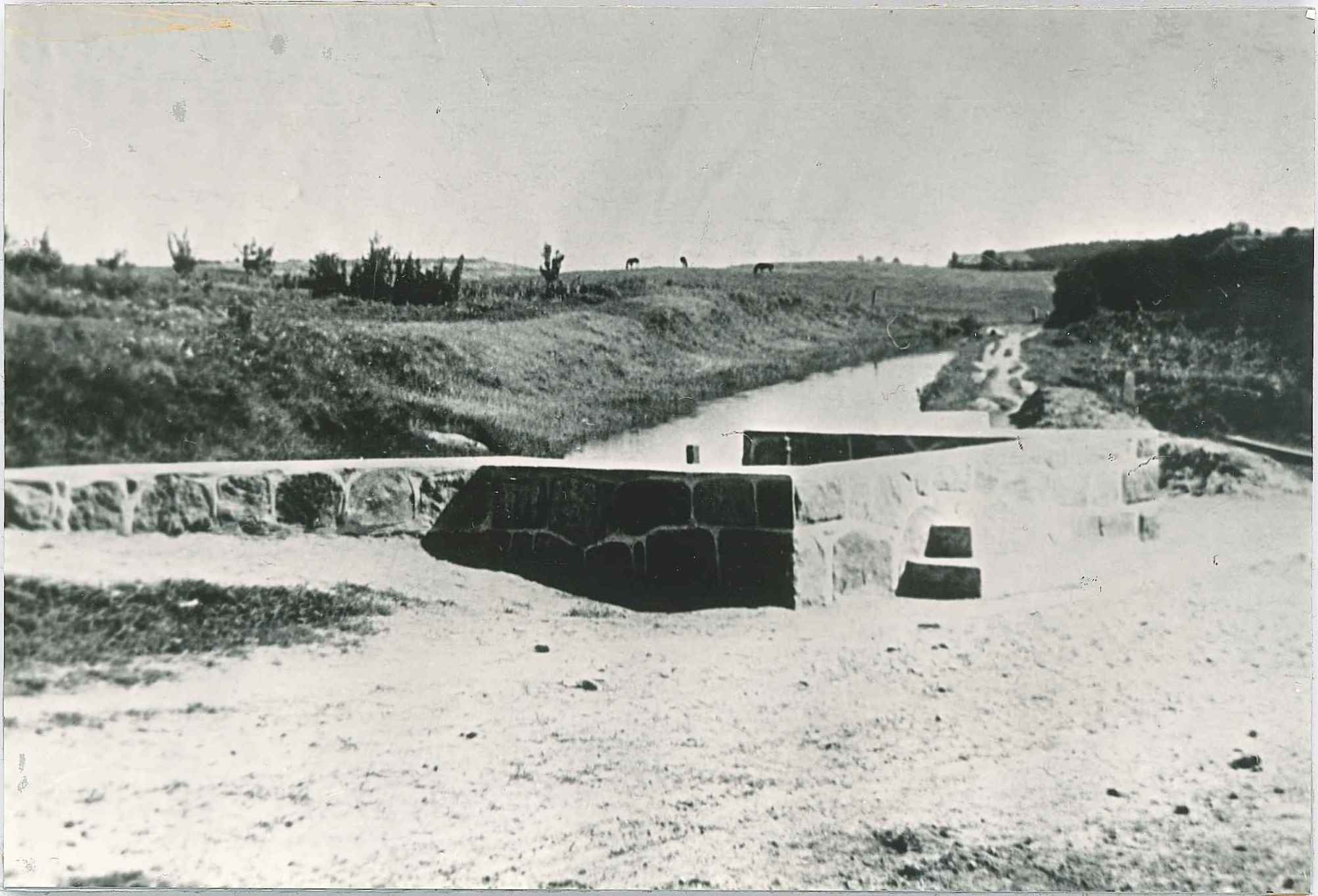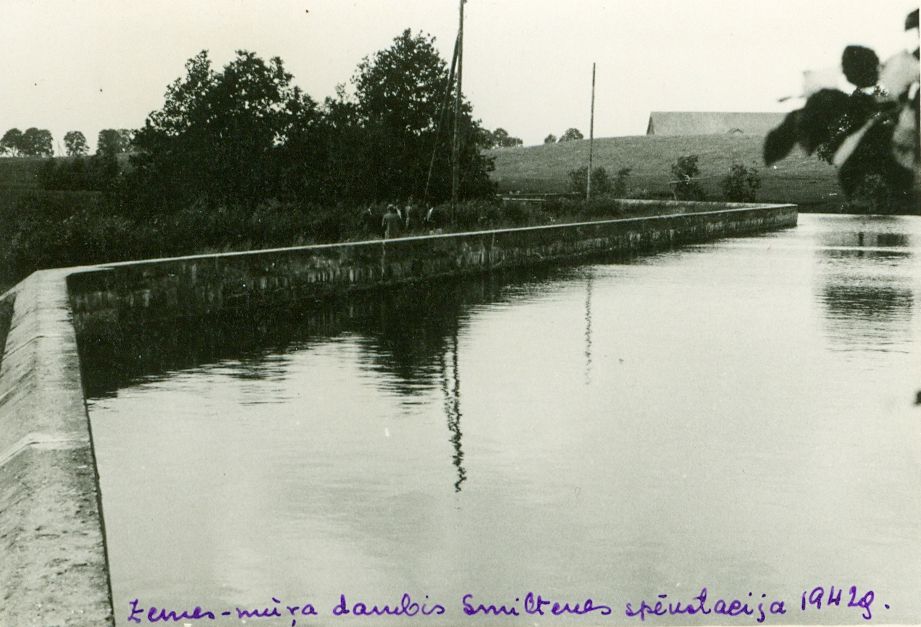 Smiltenes HES. Zemes – mūra dambis Tepera ezera ūdens līmeņa paaugstināšanai. 1942. gads.